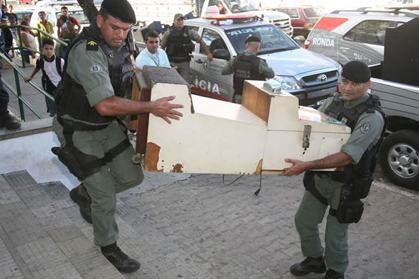 Cerca de 20 máquinas caça-níqueis foram apreendidas e aproximadamente 30 pessoas levadas para a 20ª Delegacia Regional de Polícia Civil de Juazeiro do Norte. (Foto: Chinês/Agência Miséria)