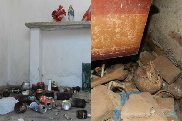 Apontando o túmulo pertencente a Samuel Nascimento que destinava para sepultar romeiros aqui falecidos, seu Pedro mostra a situação por se encontrar as ruínas e muitos ossos expostos nas imediações. Já um homem viciado em bebidas alcoólicas identificado apenas pelo nome de Fernando disse que dorme há muito tempo no cemitério por ser mais seguro e tranqüilo do que lá fora. Ele acrescentou não ter “medo de almas” e fica muito à vontade durante as madrugadas.