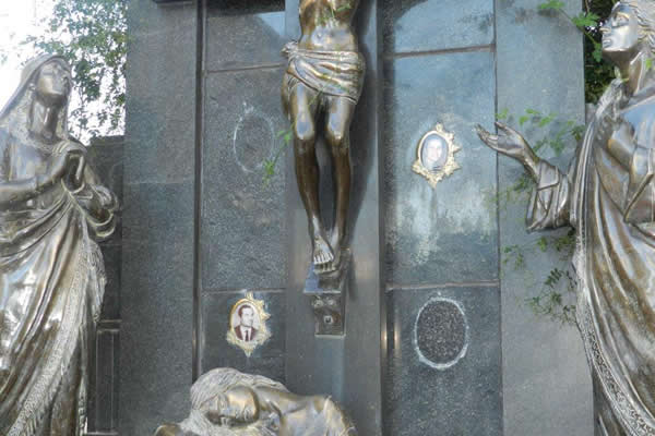 Dona Francisca Luiz de França, mostra o jazigo aberto onde está sepultado seu filho.